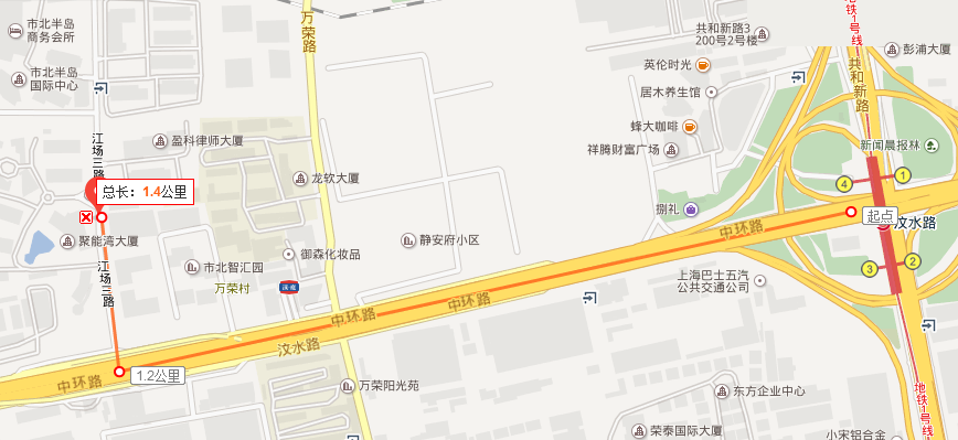 地铁一号线汶水路站下,4号口出,向西1.4公里,步行约20分钟